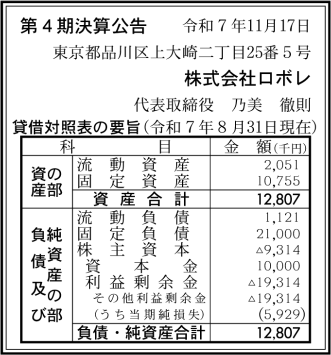 | 利益剰余金 | ▲1,931万4,000円 (赤字拡大) |
