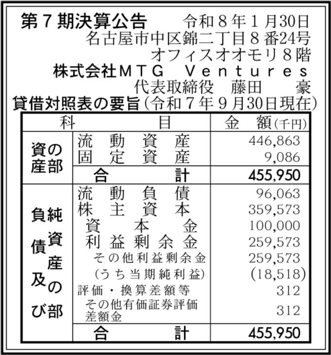 | 会社名 | 株式会社MTG Ventures |