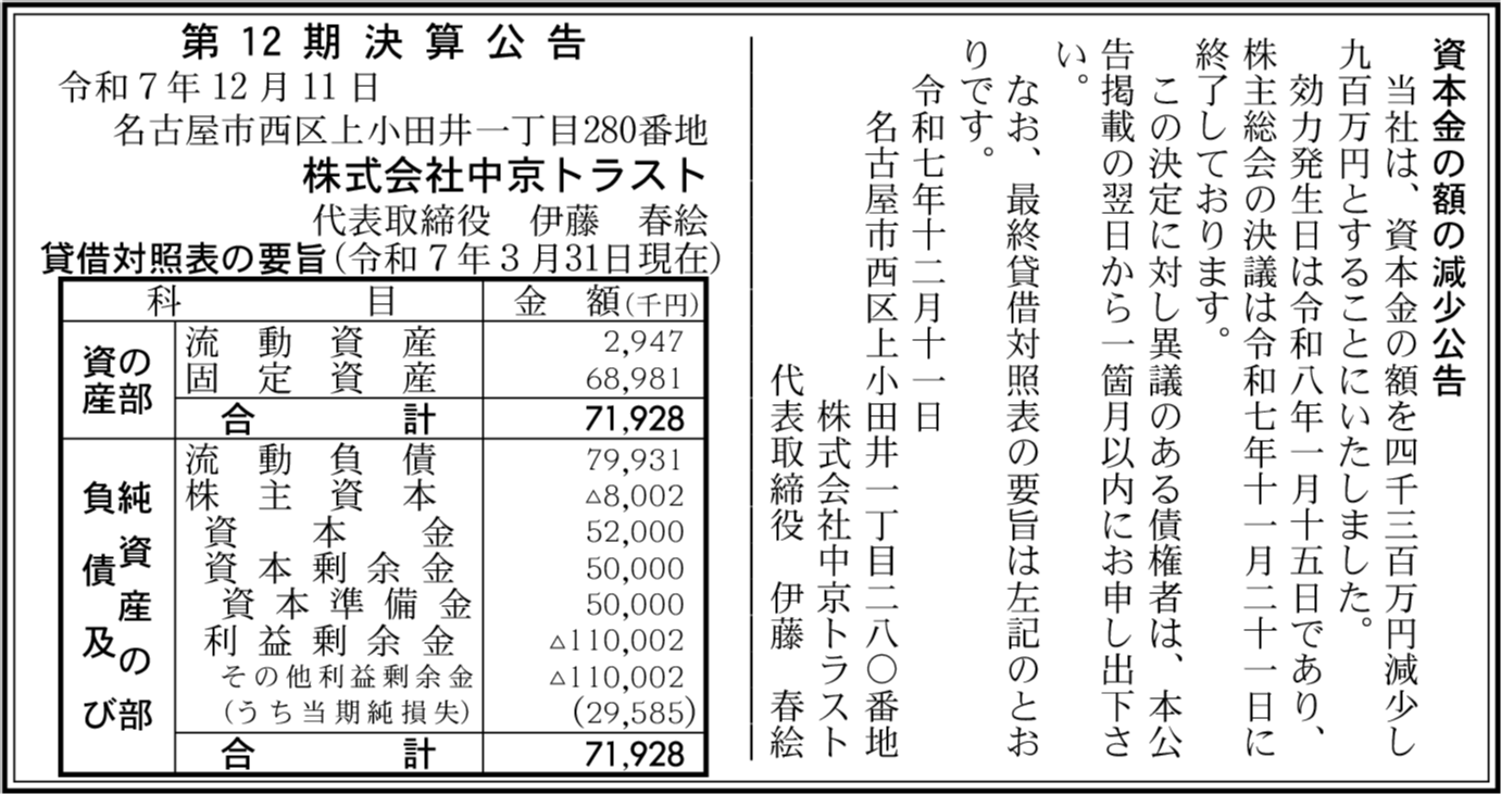 | 利益剰余金 | ▲1億1,000万2,000円 |
