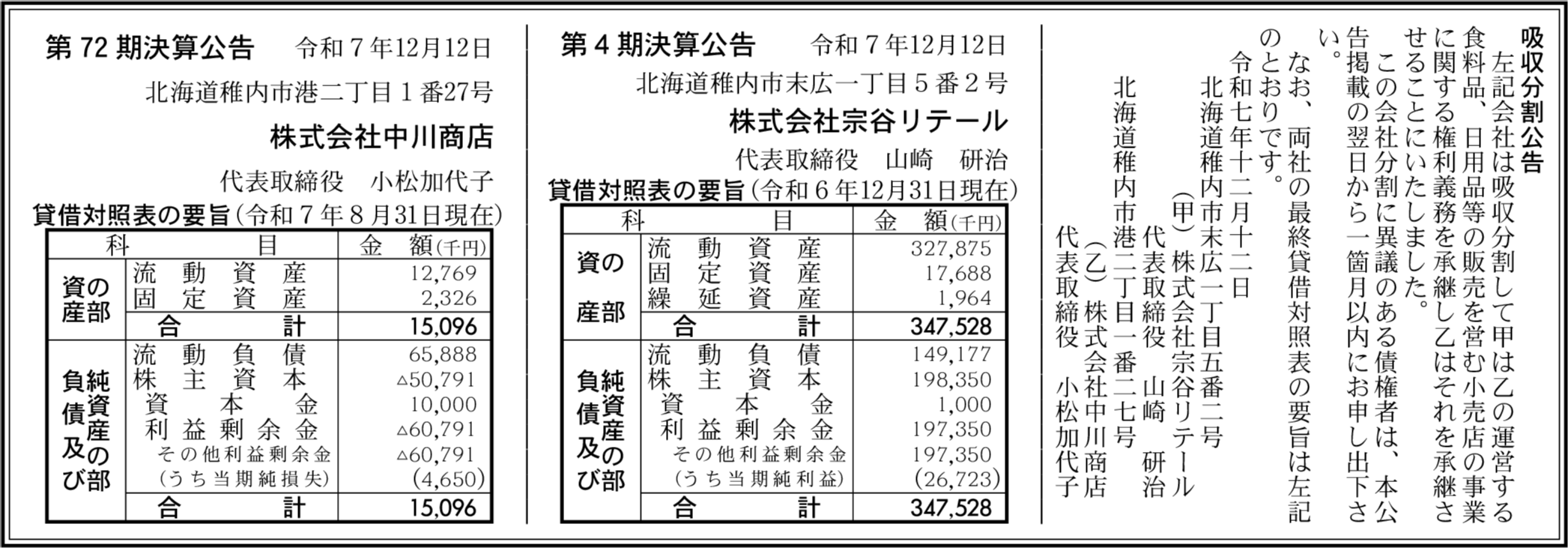 株式会社カタクラフーズ 北海道稚内市 【2025年3月期】 |