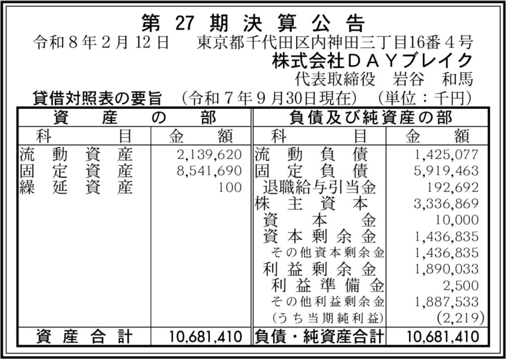 日本アセットアドバンス株式会社 東京都千代田区 【2025年10月期】 |