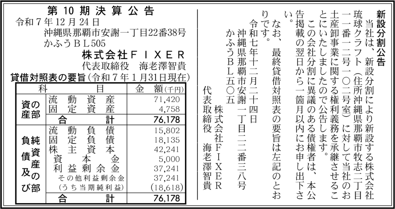 株式会社RCワークス 沖縄県那覇市 【2025年7月期】 |