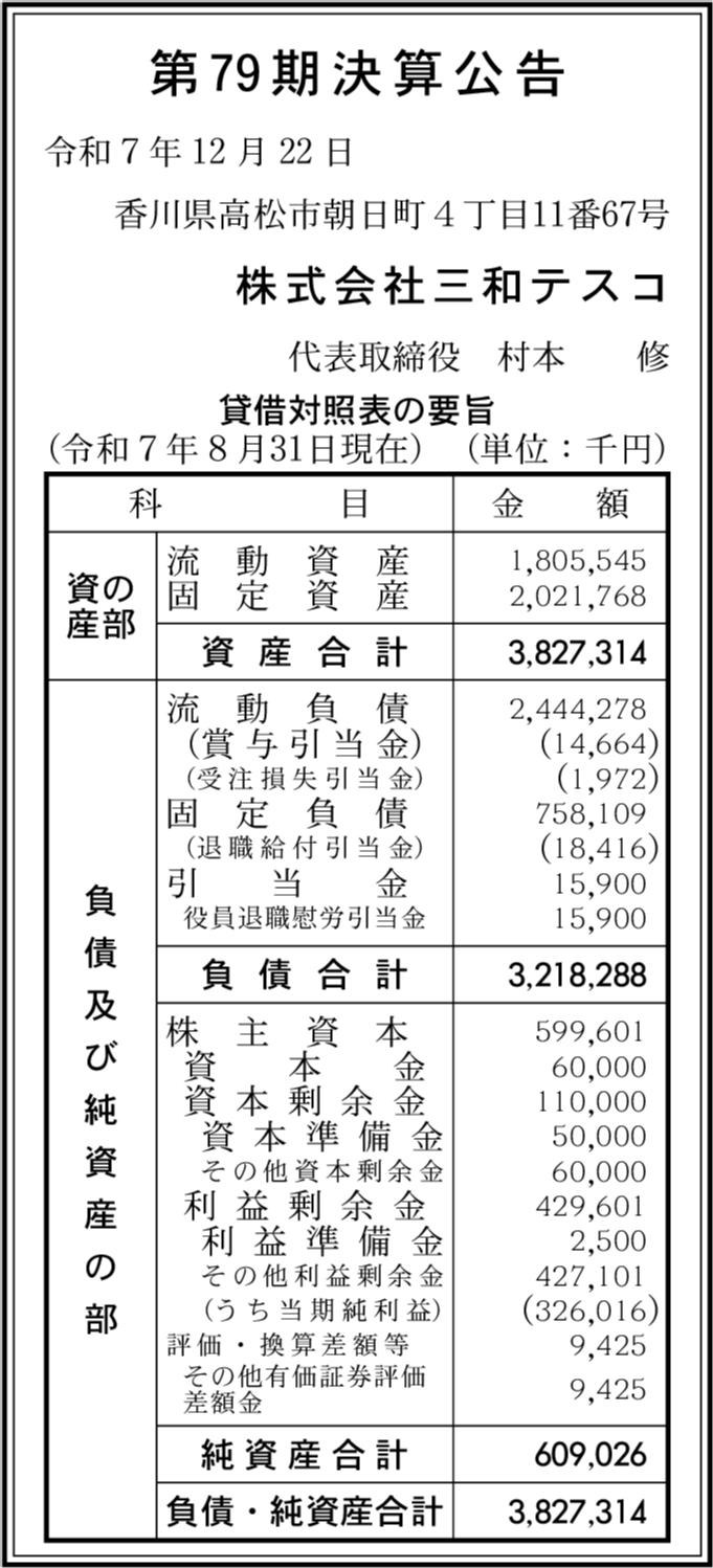桜テクニカ株式会社 香川県高松市 【2025年9月期】 |