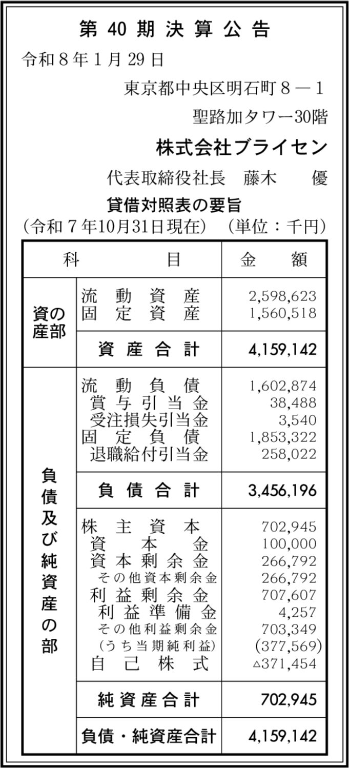 | 会社名 | 株式会社ブライセン |