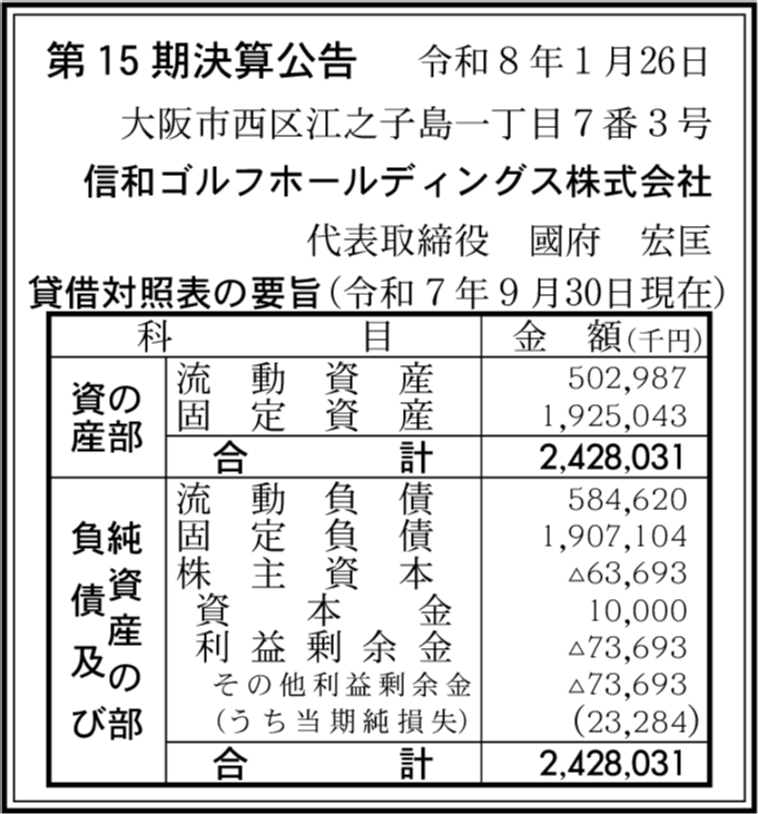 株式会社信和ゴルフメンテナンス 京都市中京区 【2025年9月期】 |