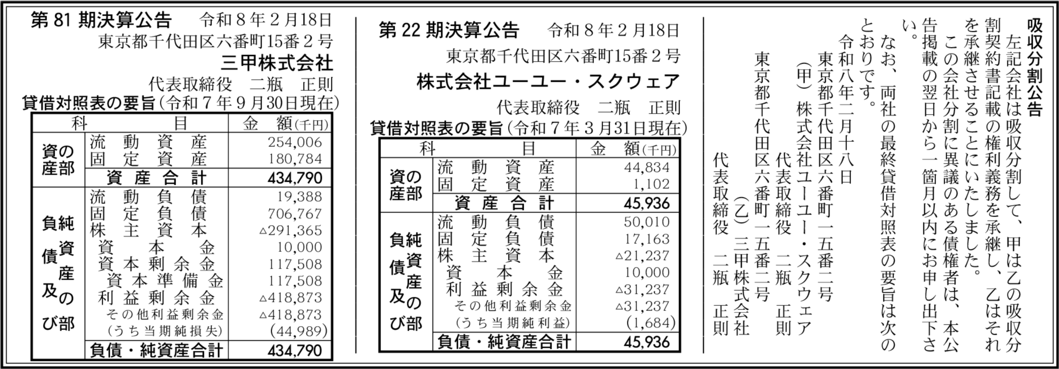 三甲株式会社 東京都千代田区 【2025年9月期】 |