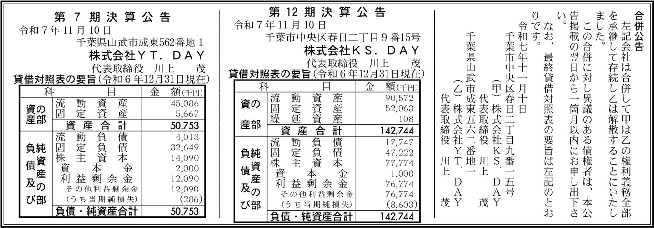 株式会社KS.DAY 千葉市中央区 【2024年12月期】 |