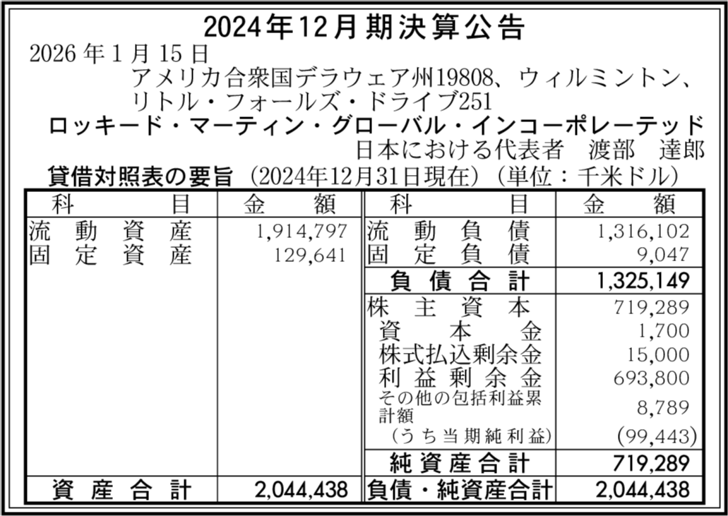 | 会社名 | ロッキード・マーティン・グローバル・インコーポレーテッド |