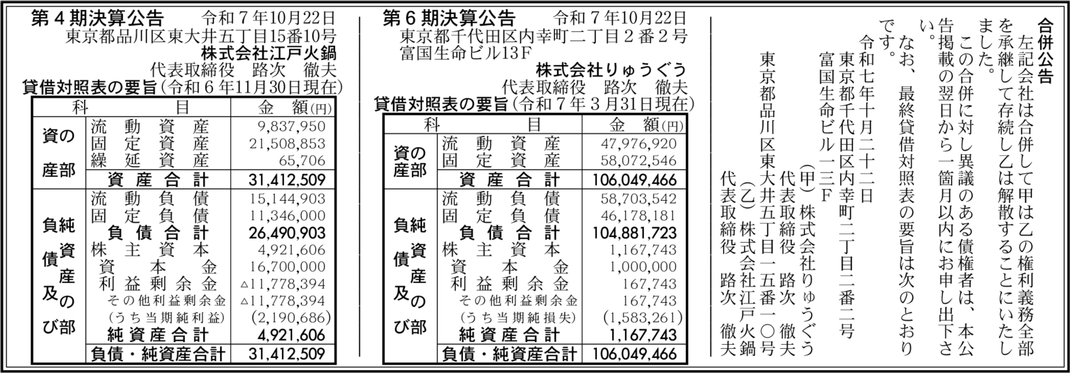 株式会社江戸火鍋 東京都品川区 【2024年11月期】 |