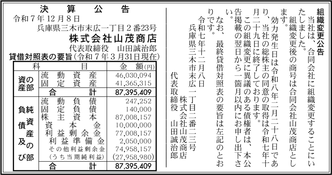 | 会社名 | 株式会社山茂商店 |