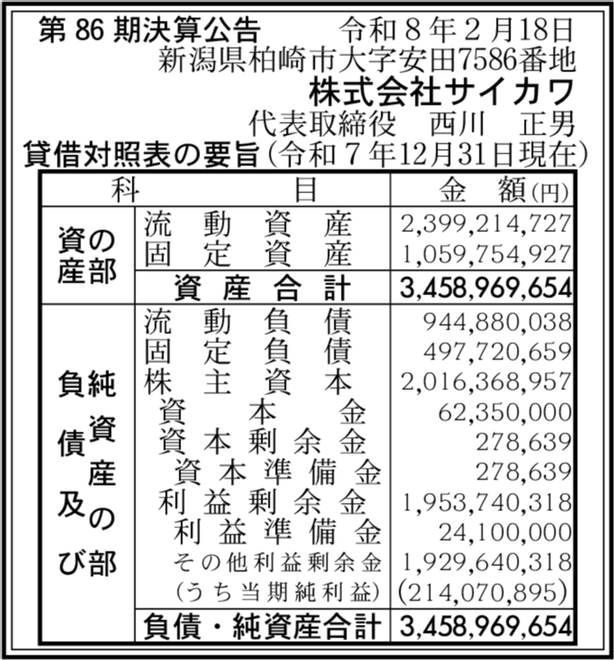 | 会社名 | 株式会社サイカワ |
