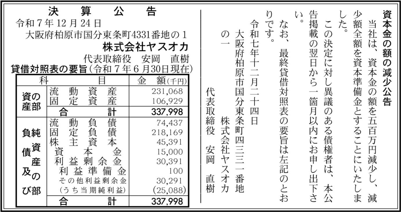 株式会社玉政閉鎖済み 大阪府柏原市 【2024年10月期】 |