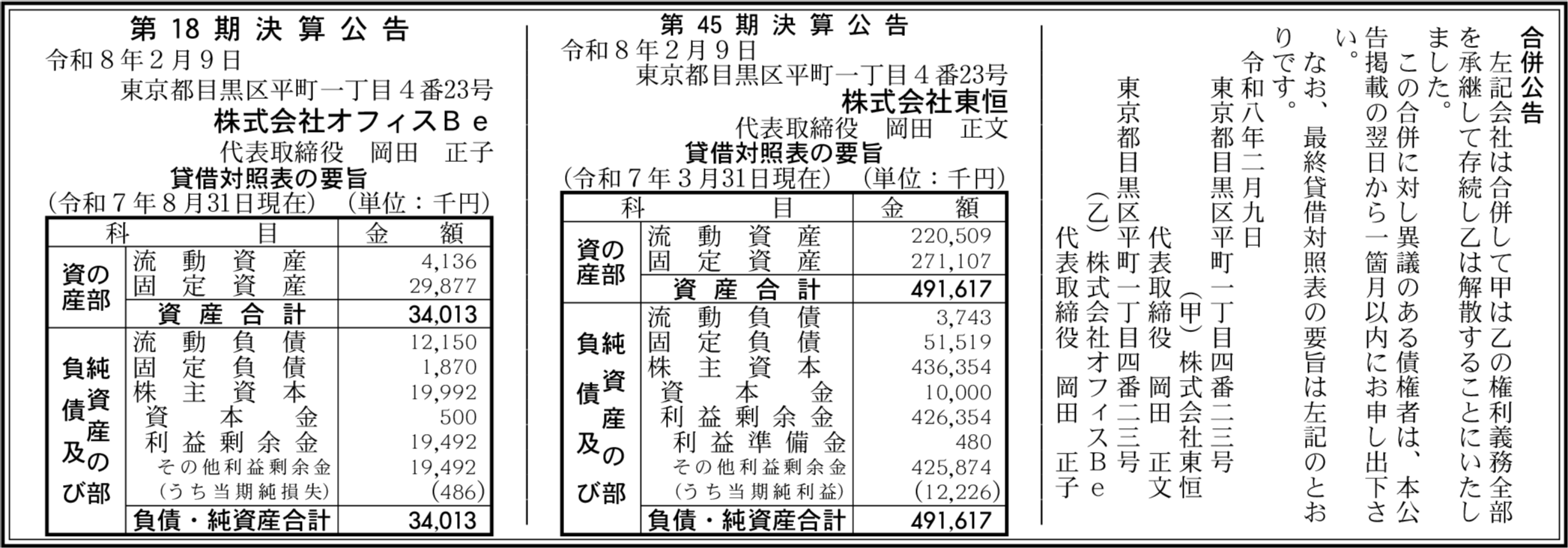 株式会社オフィスBe 東京都目黒区 【2025年8月期】 |