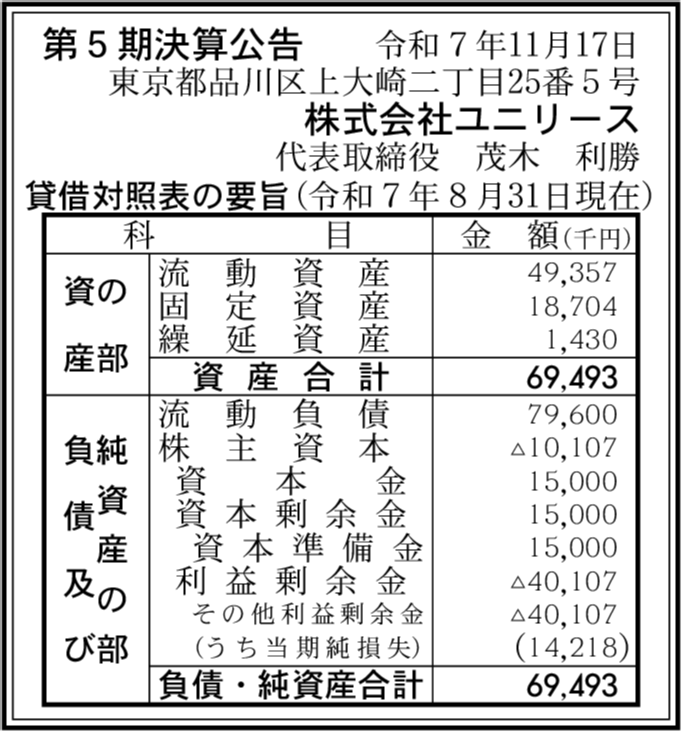 | 会社名 | 株式会社ユニリース |