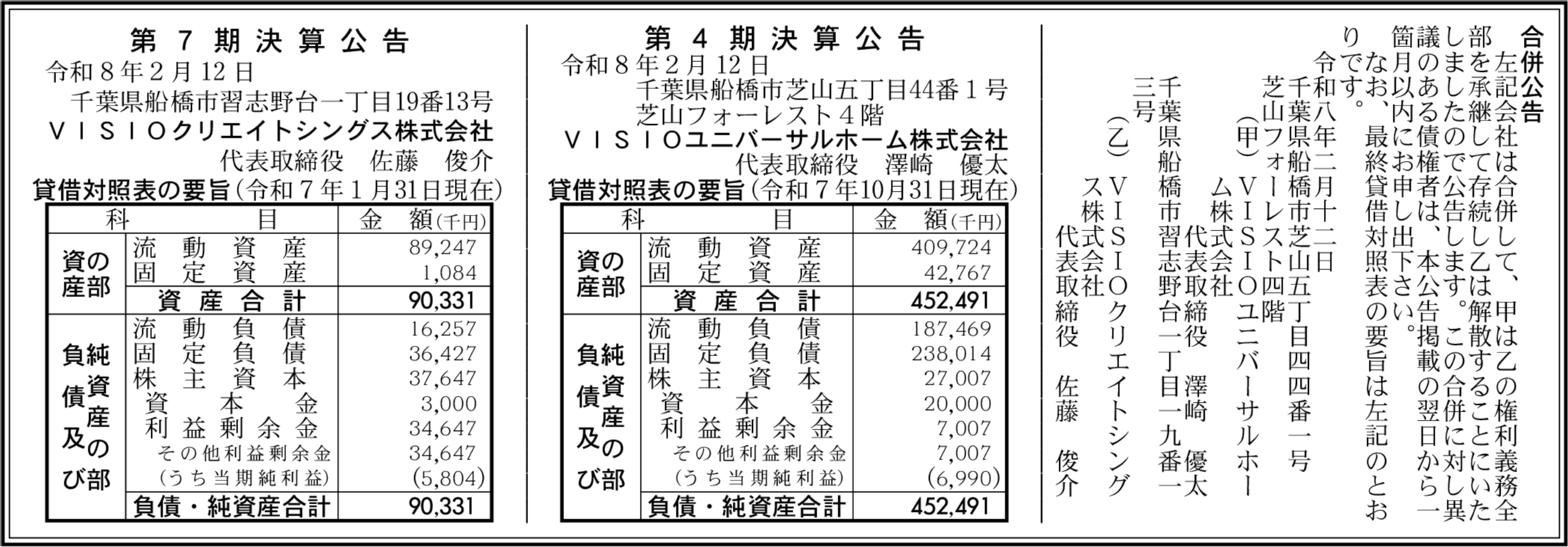 VISIOユニバーサルホーム株式会社 千葉県船橋市 【2025年10月期】 |