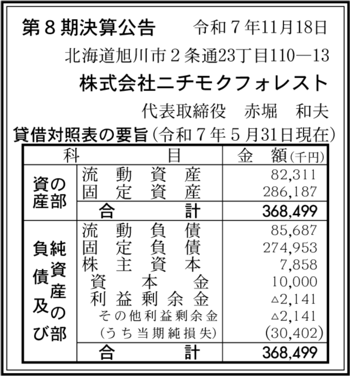 株式会社ニチモク林産北海道 北海道旭川市 【2025年3月期】 |