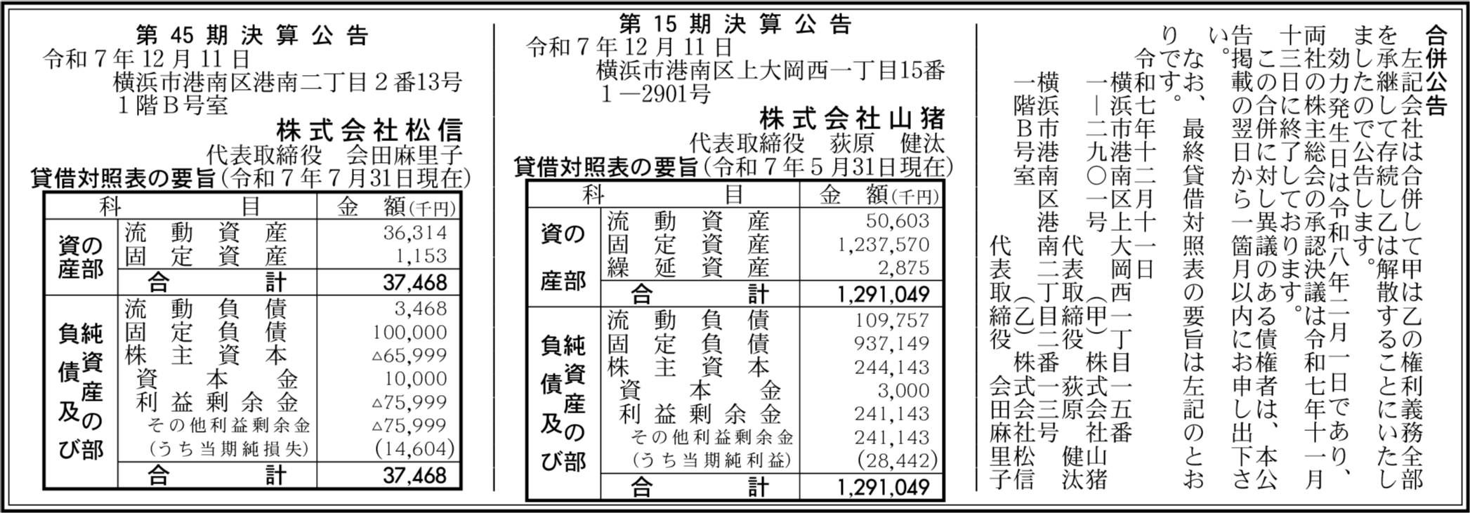 株式会社山猪 横浜市港南区 【2025年5月期】 |