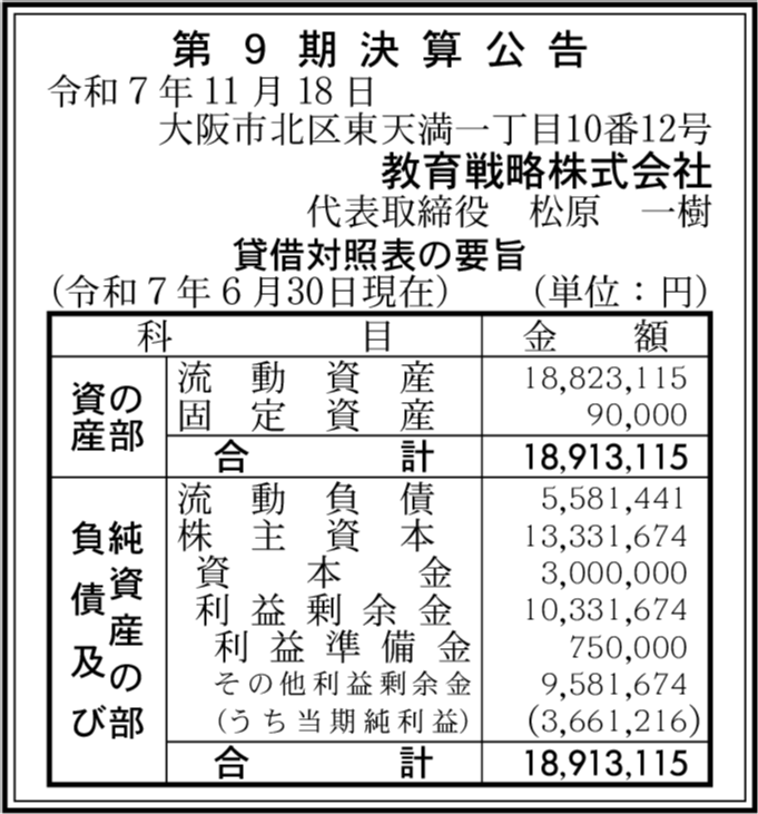 新教育総合研究会株式会社 大阪市北区 【2023年6月期】 |