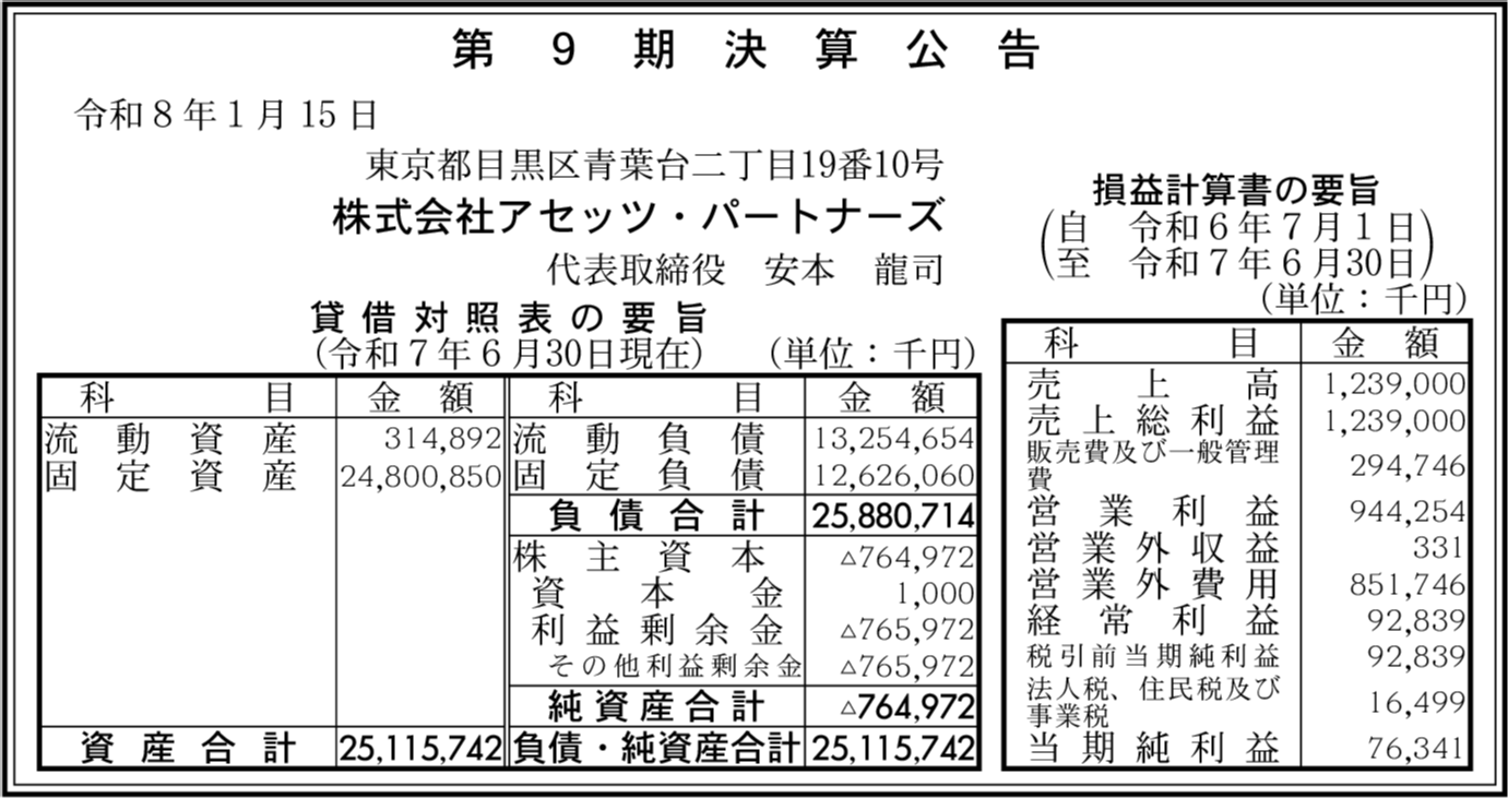 | 会社名 | 株式会社アセッツ・パートナーズ |