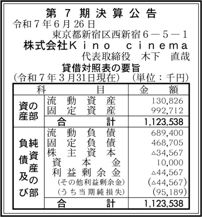 株式会社キノフィルムズ 東京都新宿区 【2025年3月期】 |