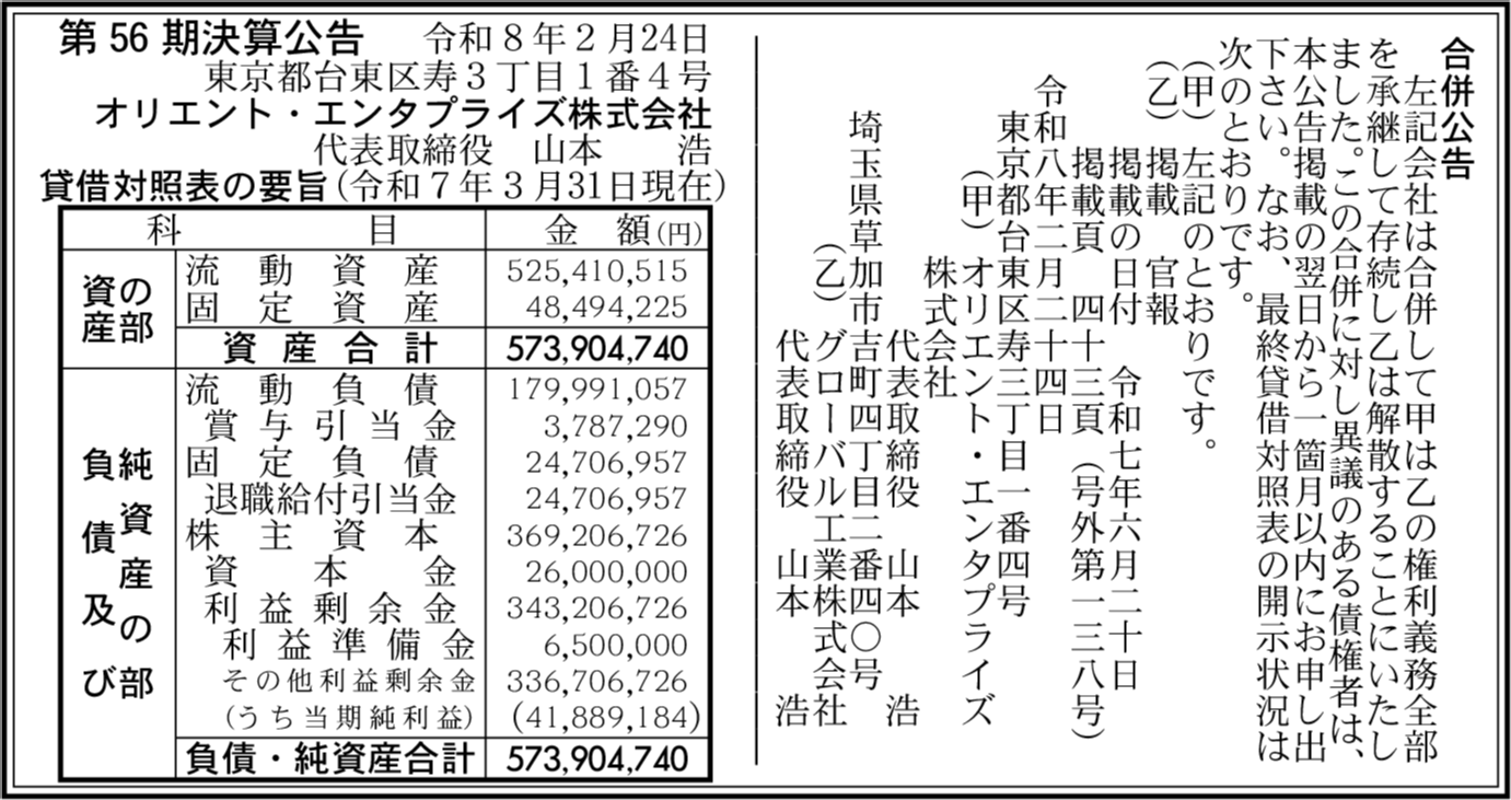 | 会社名 | オリエント・エンタプライズ株式会社 |