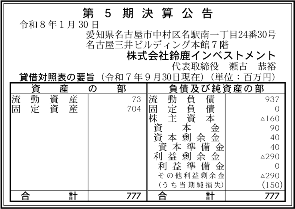 | 会社名 | 株式会社鈴鹿インベストメント |
