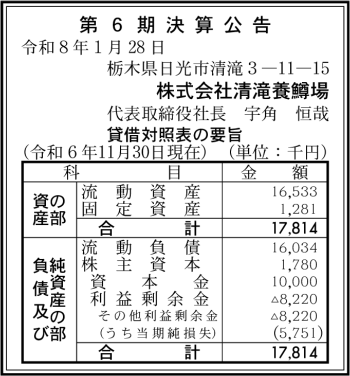 | 会社名 | 株式会社清滝養鱒場 |