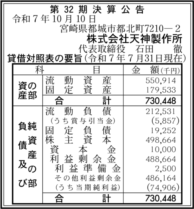 綾目精機株式会社 広島県府中市 【2024年7月期】 |