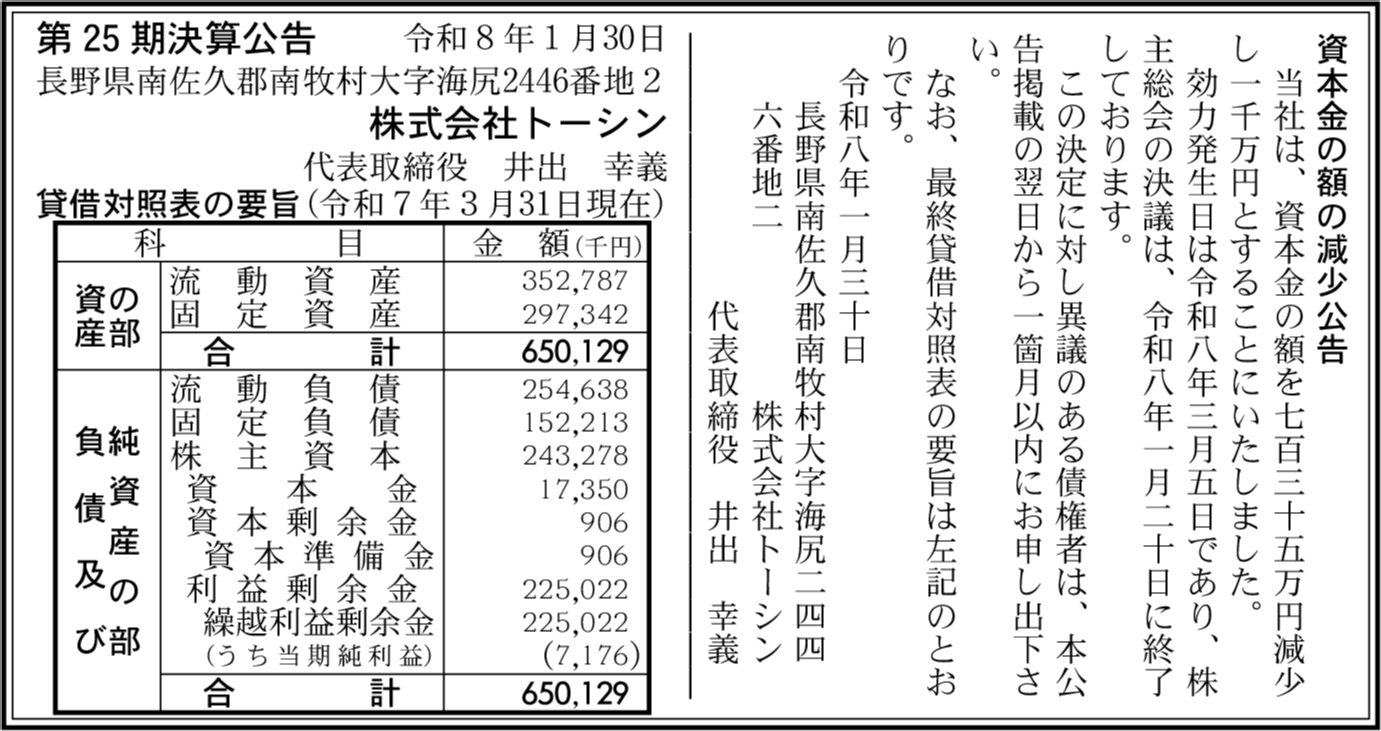 | 会社名 | 株式会社トーシン |