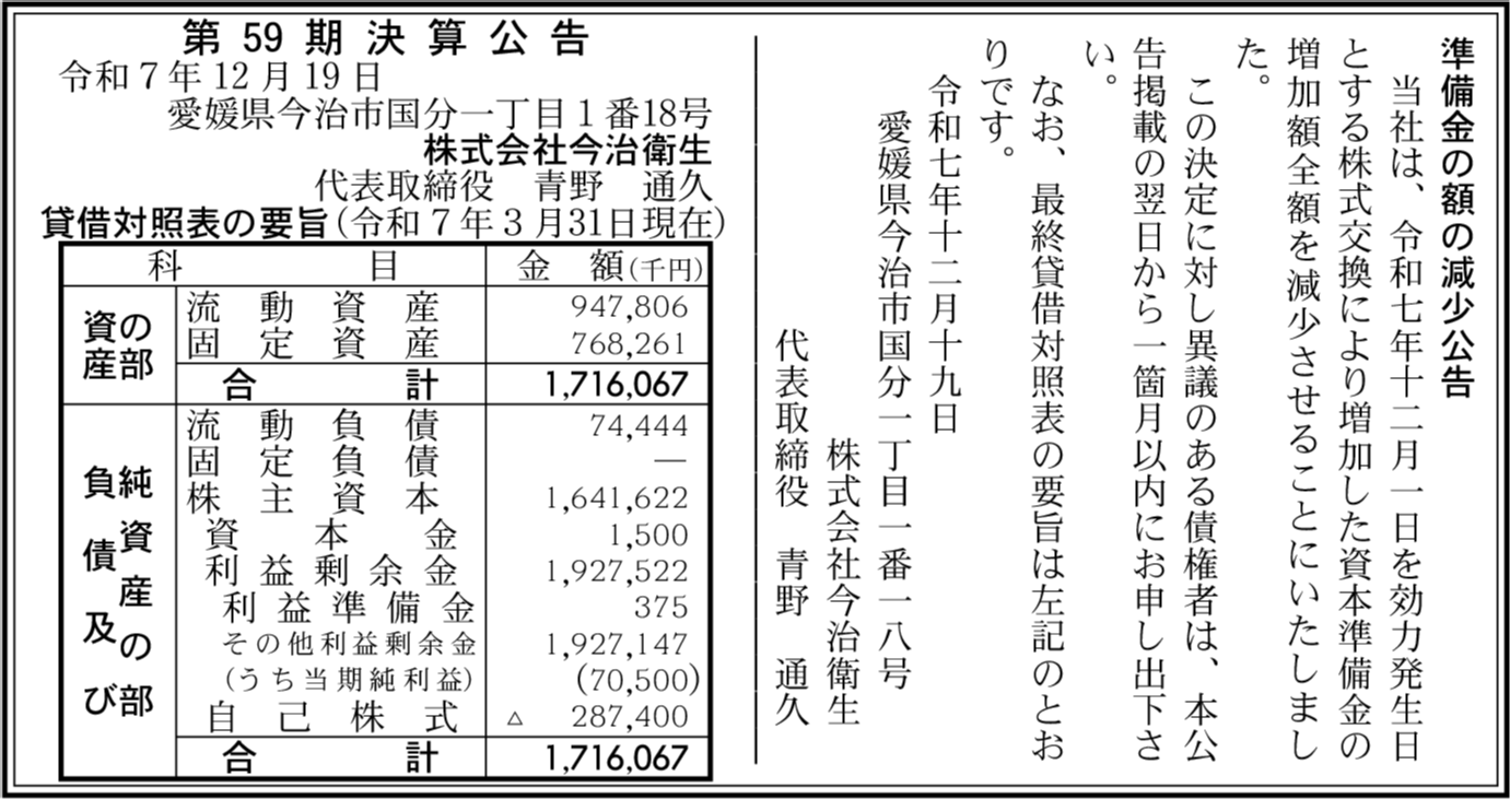 株式会社今治あきない商社 愛媛県今治市 【2025年5月期】 |