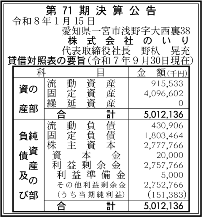 | 会社名 | 株式会社のいり |
