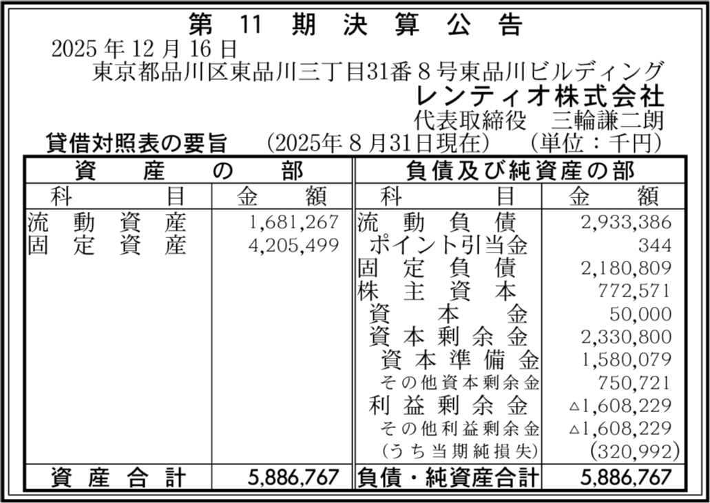 | 会社名 | レンティオ株式会社 |