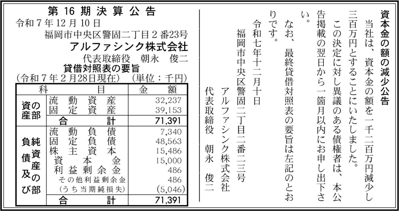 | 会社名 | アルファシンク株式会社 |