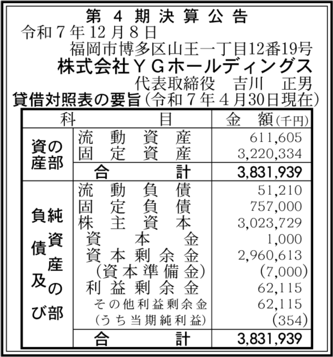 | 総資産 | 38億3,193万9,000円 (+8.64%) |