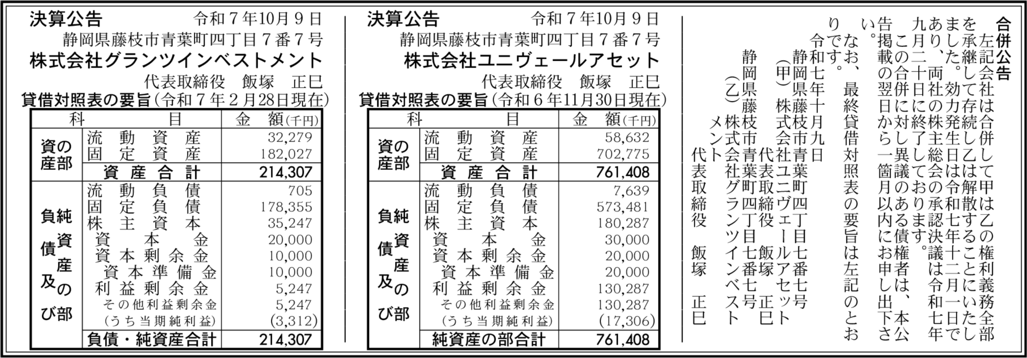 株式会社ユニヴェールアセット 静岡県藤枝市 【2024年11月期】 |