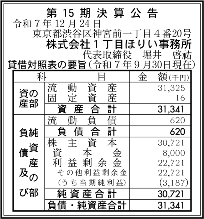 | 会社名 | 株式会社1丁目ほりい事務所 |