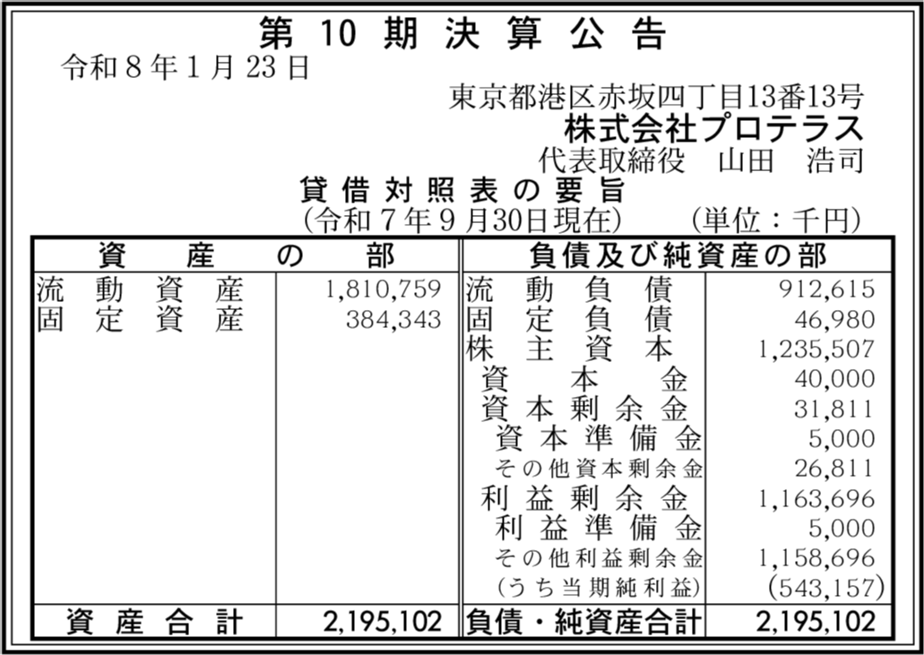 株式会社テラスホールディングス 東京都港区 【2025年9月期】 |