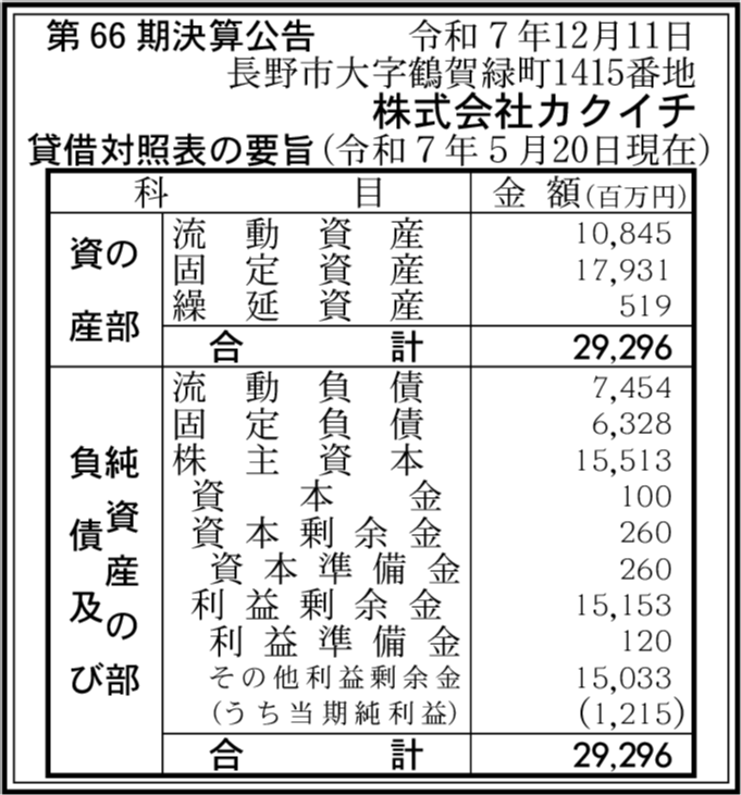北島興業株式会社 長野市 【2025年6月期】 |