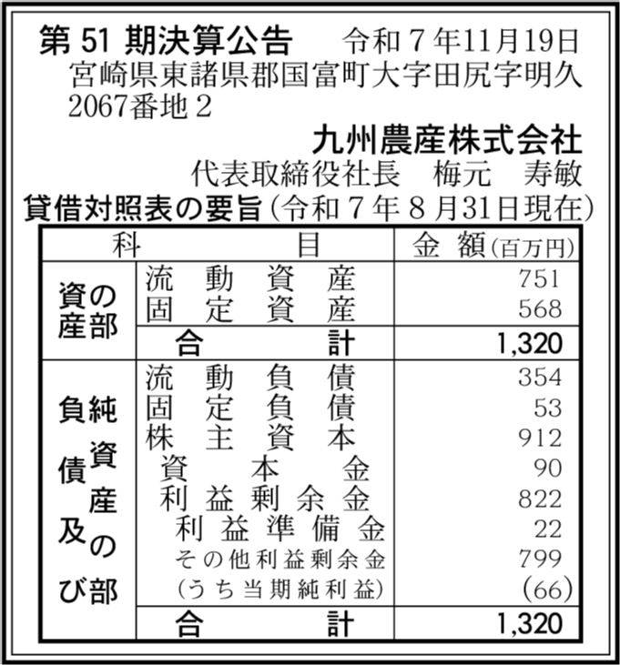 協同日之出産業株式会社 宮崎県東諸県郡国富町 【2025年3月期】 |