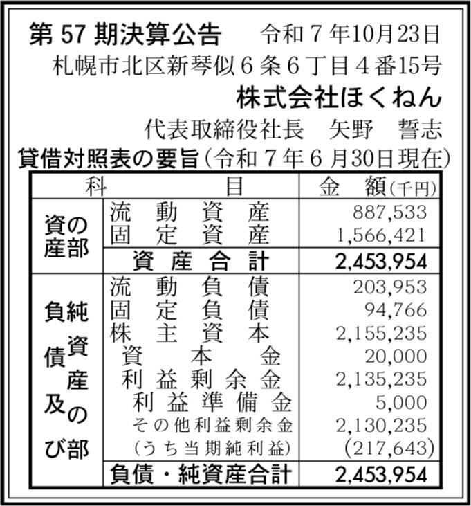 | 会社名 | 株式会社ほくねん |
