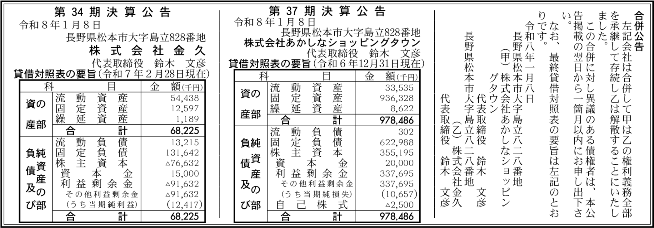 株式会社金久 長野県松本市 【2025年2月期】 |