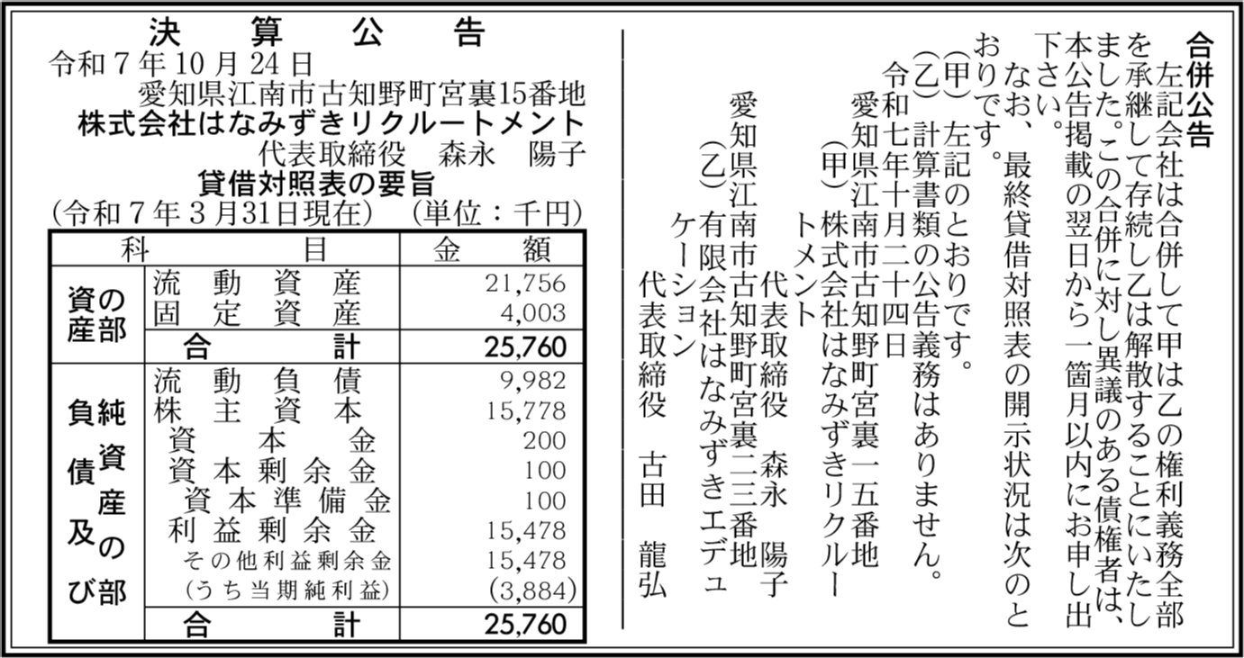 株式会社江南スクールランチ 愛知県江南市 【2025年3月期】 |