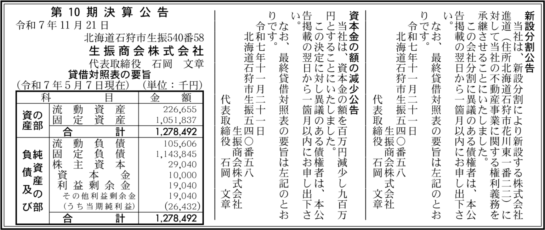 北海道石狩市生振540番58 同じ住所の会社を検索 |