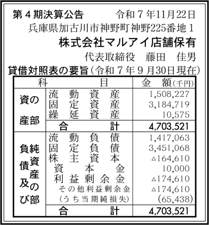 株式会社マルアイ 兵庫県加古川市 【2025年3月期】 |