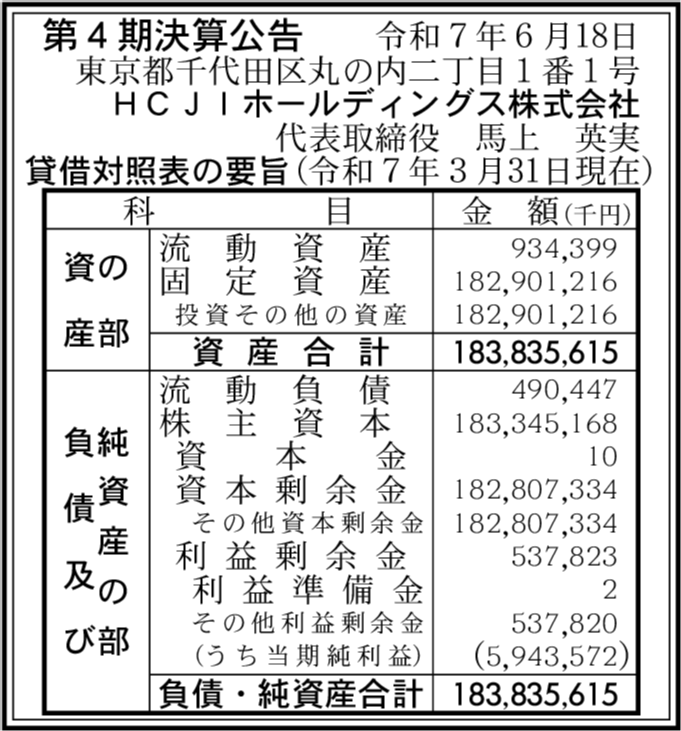 | 会社名 | HCJIホールディングス株式会社 |