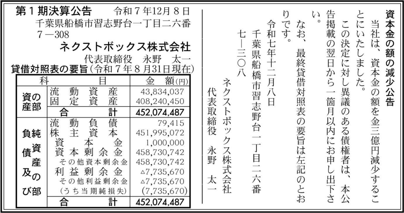| 株式会社リンク | 千葉県船橋市 | 1,431万9,000円 |