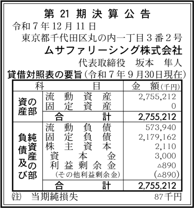 ガゼルリーシング株式会社 東京都千代田区 【2025年7月期】 |