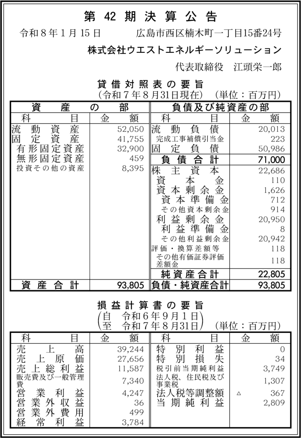 広川エナス株式会社 広島市西区 【2025年9月期】 |