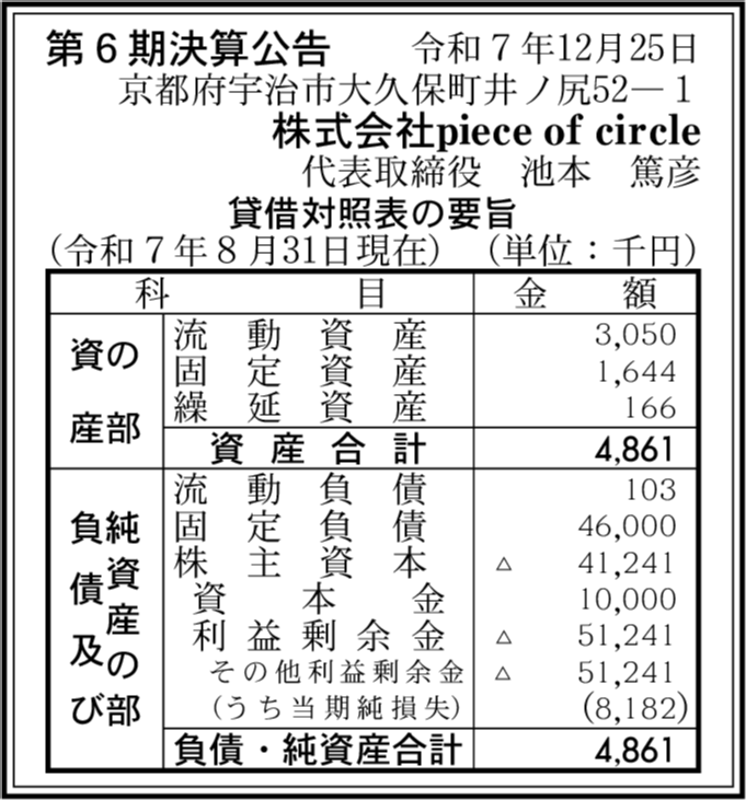 | 会社名 | 株式会社piece of circle |