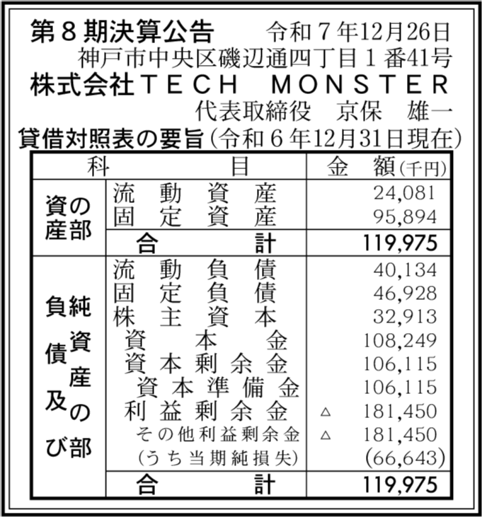 | 会社名 | 株式会社TECH MONSTER |